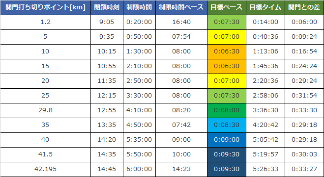 これが達成できたらもうその場で引退していいと思う。去年の北海道マラソンで言うと、35km関門以降、北大キャンパスに入る前の時間にゴールしていることになる。すごい。